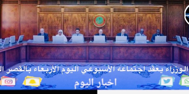 من المقرر أن يعقد مجلس الوزراء اجتماعه الأسبوعي تحت رئاسة رئيس الجمهورية، محمد ولد الشيخ الغزواني، صباح اليوم الأربعاء بالقصر الرئاسي في نواكشوط.